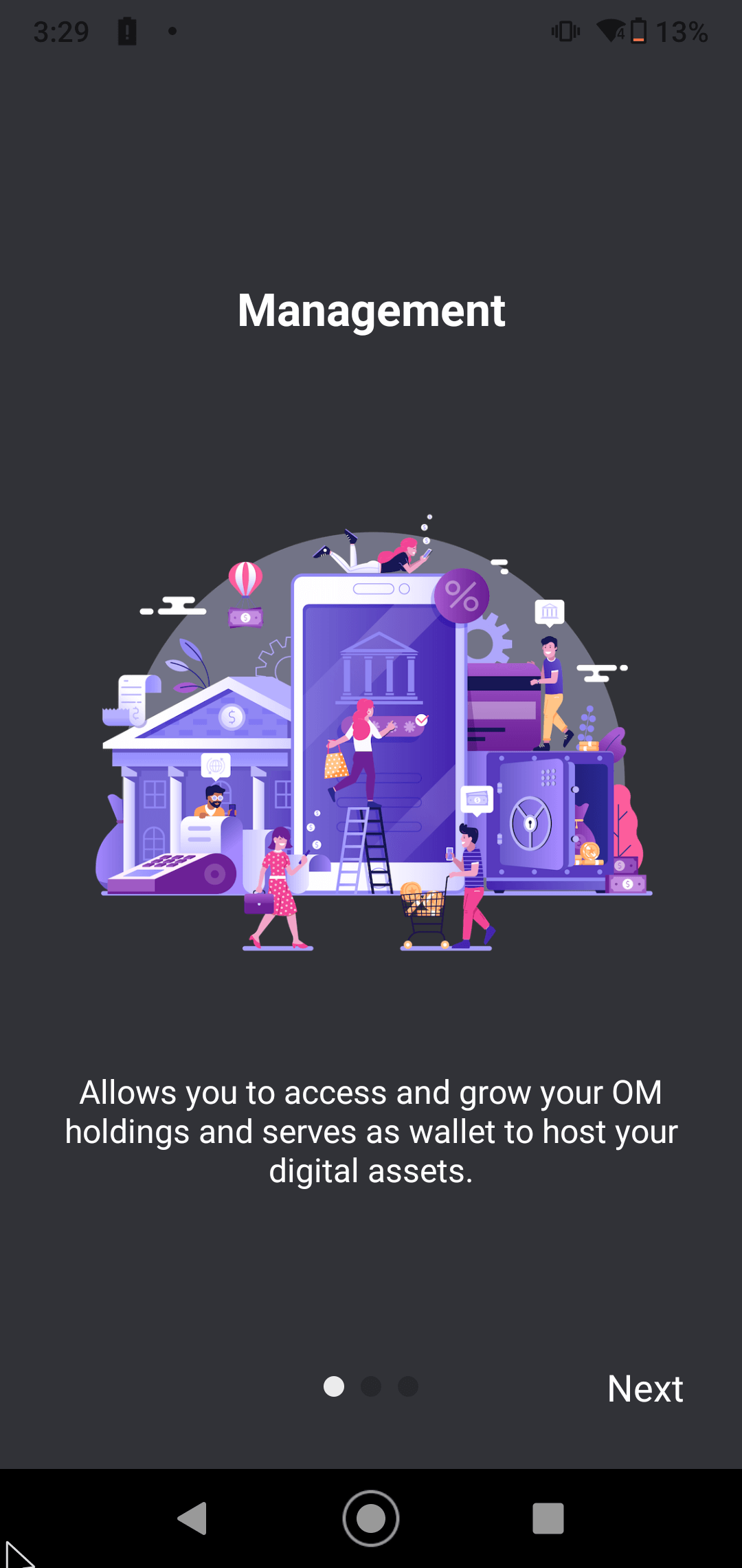 1. Management (Tự quản lý): Allows you to access and grow your OM holdings and serves as wallet to host your digital assets. (Cho phép bạn truy cập và tăng lượng nắm giữ OM của mình và đóng vai trò là ví để lưu trữ tài sản kỹ thuật số của bạn).