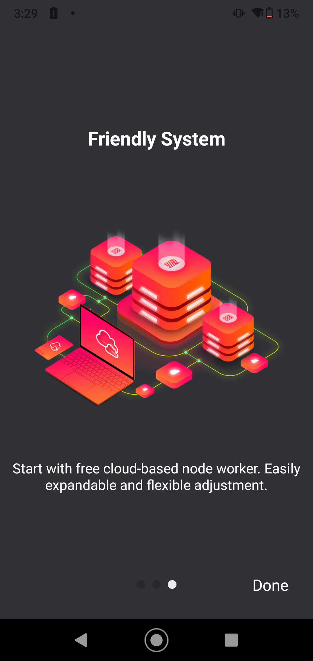 3. Friendly System (Hệ thống thân thiện): Start with free cloud-based node worker. Easily expandable and flexible adjustment. (Bắt đầu khai thác với node dựa trên dám mây miễn phí. Dễ dàng mở rộng và điều chỉnh linh hoạt).