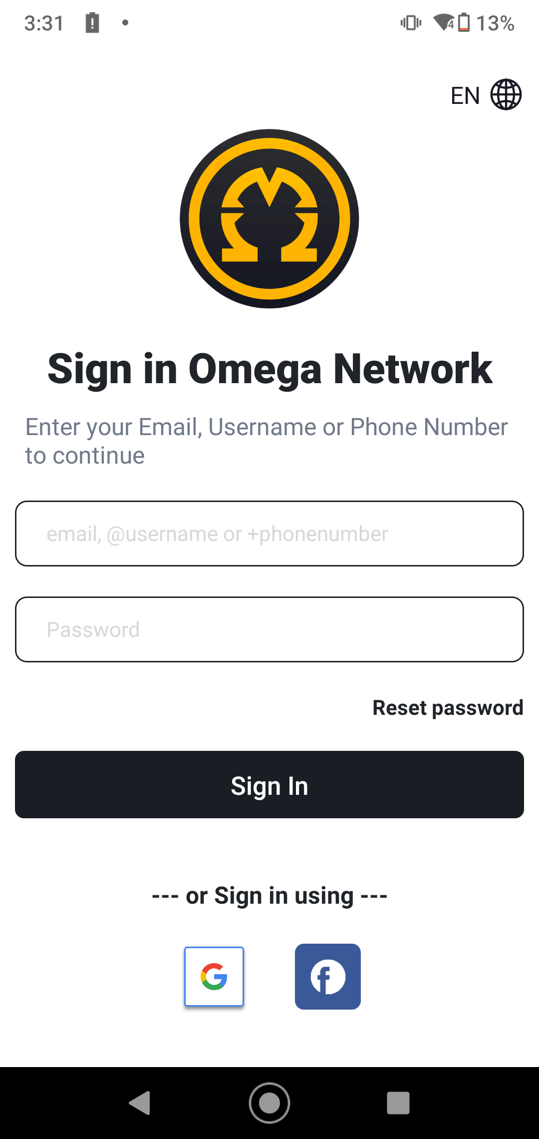 • Ở thời điểm hiện tại, ứng dụng Omega Network chỉ chấp nhận đăng ký tài khoản bằng email của Gmail. Điều đó có nghĩa là những email không phải định dạng @gmail sẽ chưa thể đăng ký tài khoản Omega Network.